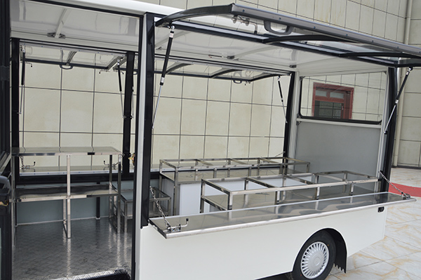 移动售摊位的门面,它最主要的优势就是便于流动,灵活,可随着经营货车相较于固定的实际情况改变经营地点。